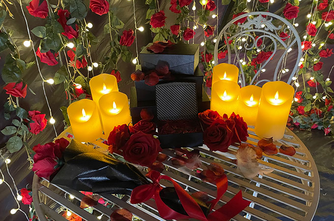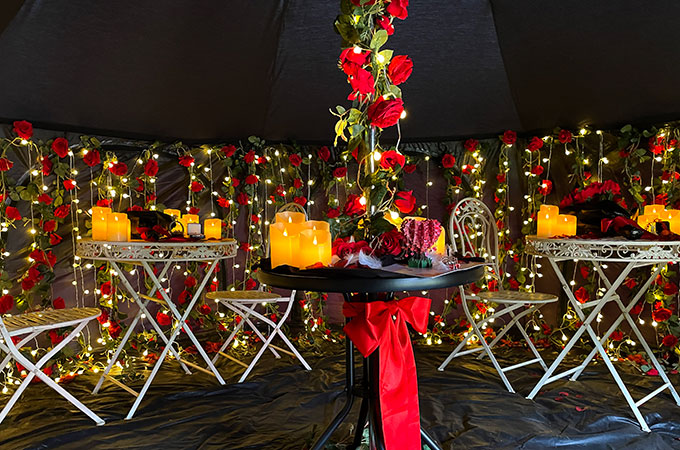 空の暗さはナイトローズにも「素敵なこと」をもたらしてくれました。バラとイルミネーションが装飾されたブラックテントではイルミネーションのほか、ロウソクの灯りが一段と照らされ、とても幻想的でした。今年はナイトローズの写真がSNS上に多くあり、皆さまとてもきれいに撮ってくれていて大変嬉しい限りです。
