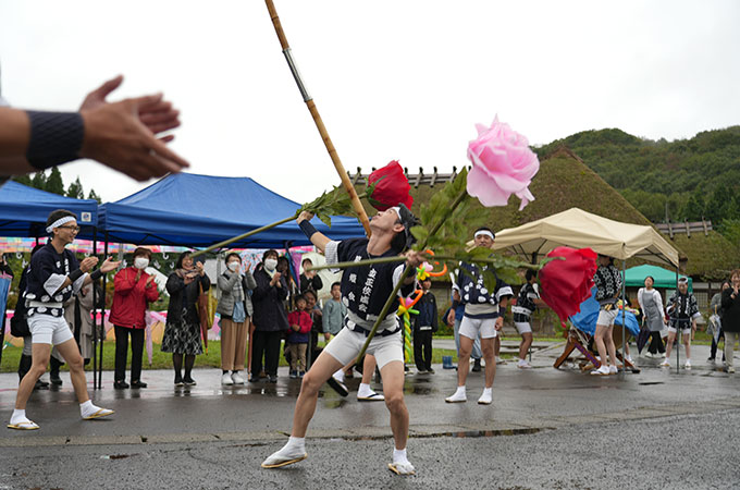 バラの花を持って竿燈をあげるサービスに拍手でした👏
